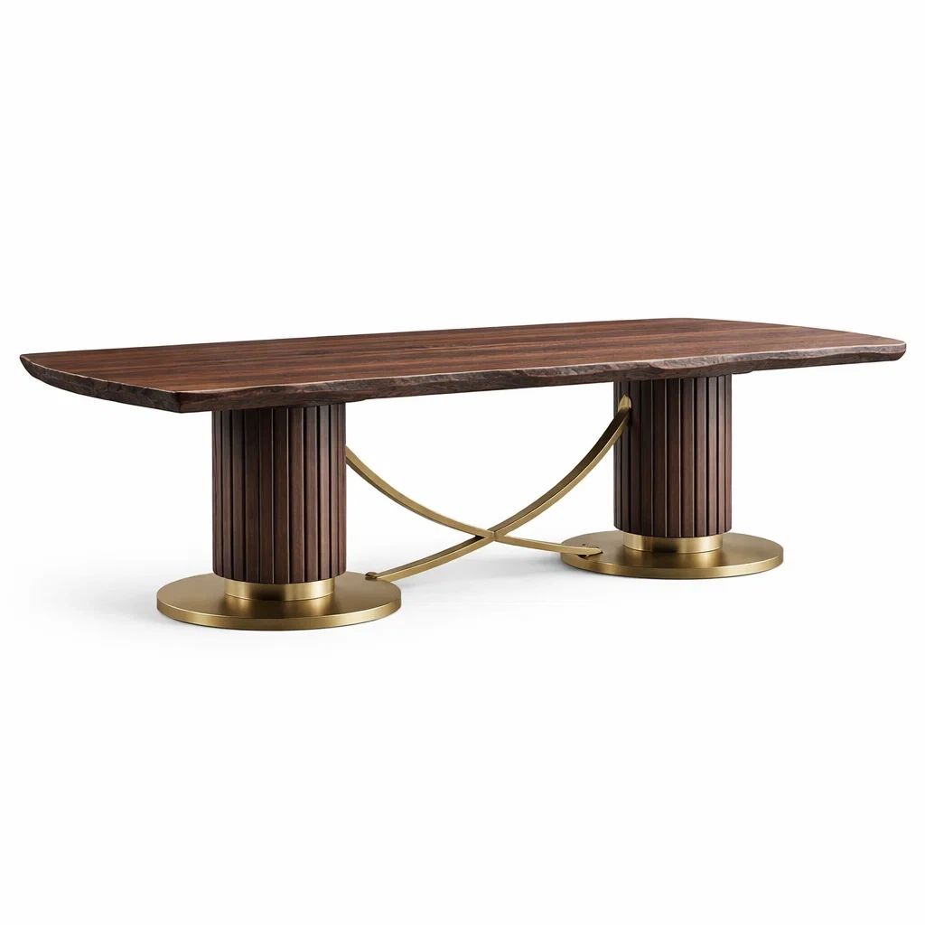 Matériaux : Plateau en bois massif, piétement en métal doré